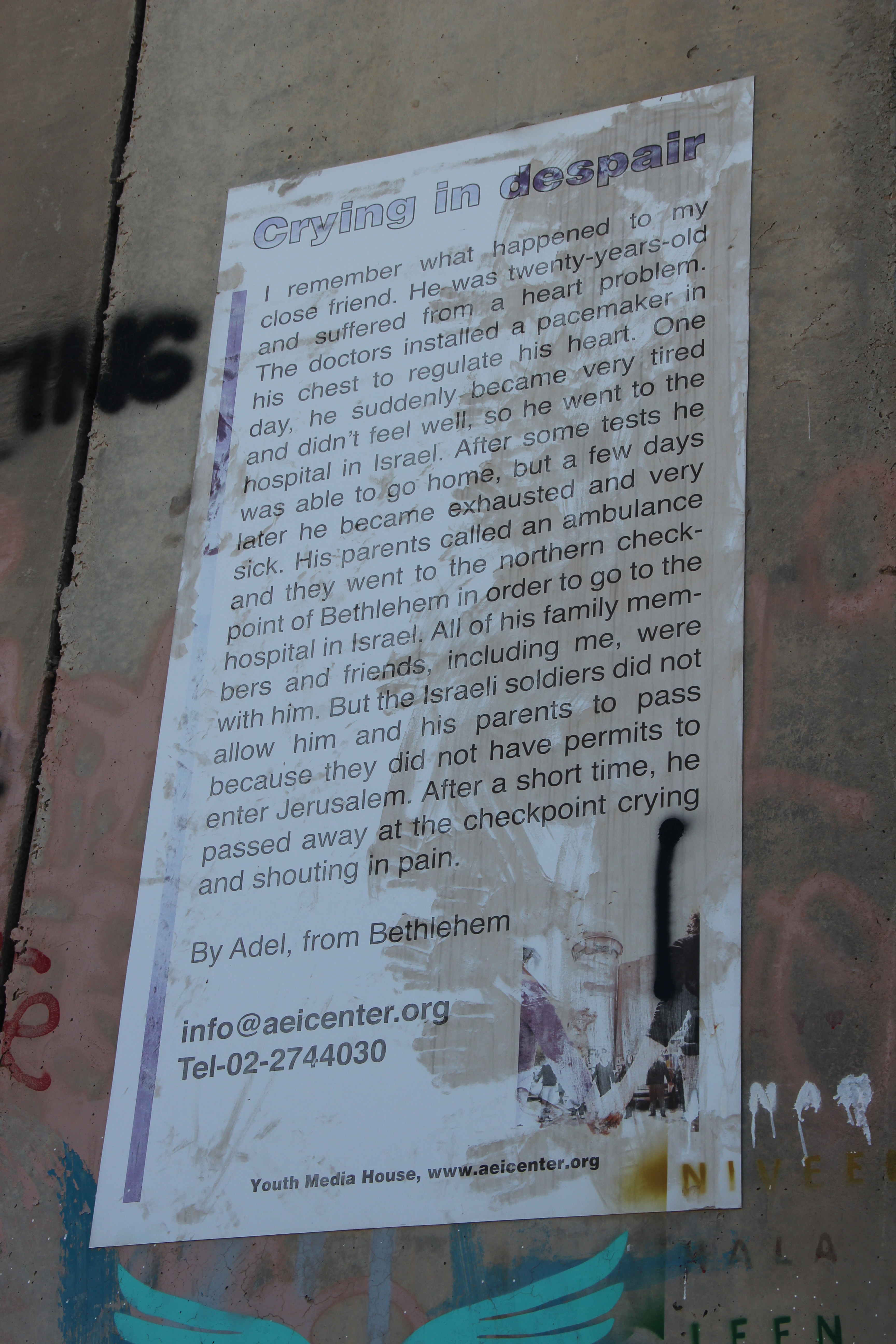 One of many personal testimonies that line the inside of the wall at the Bethlehem checkpoint.