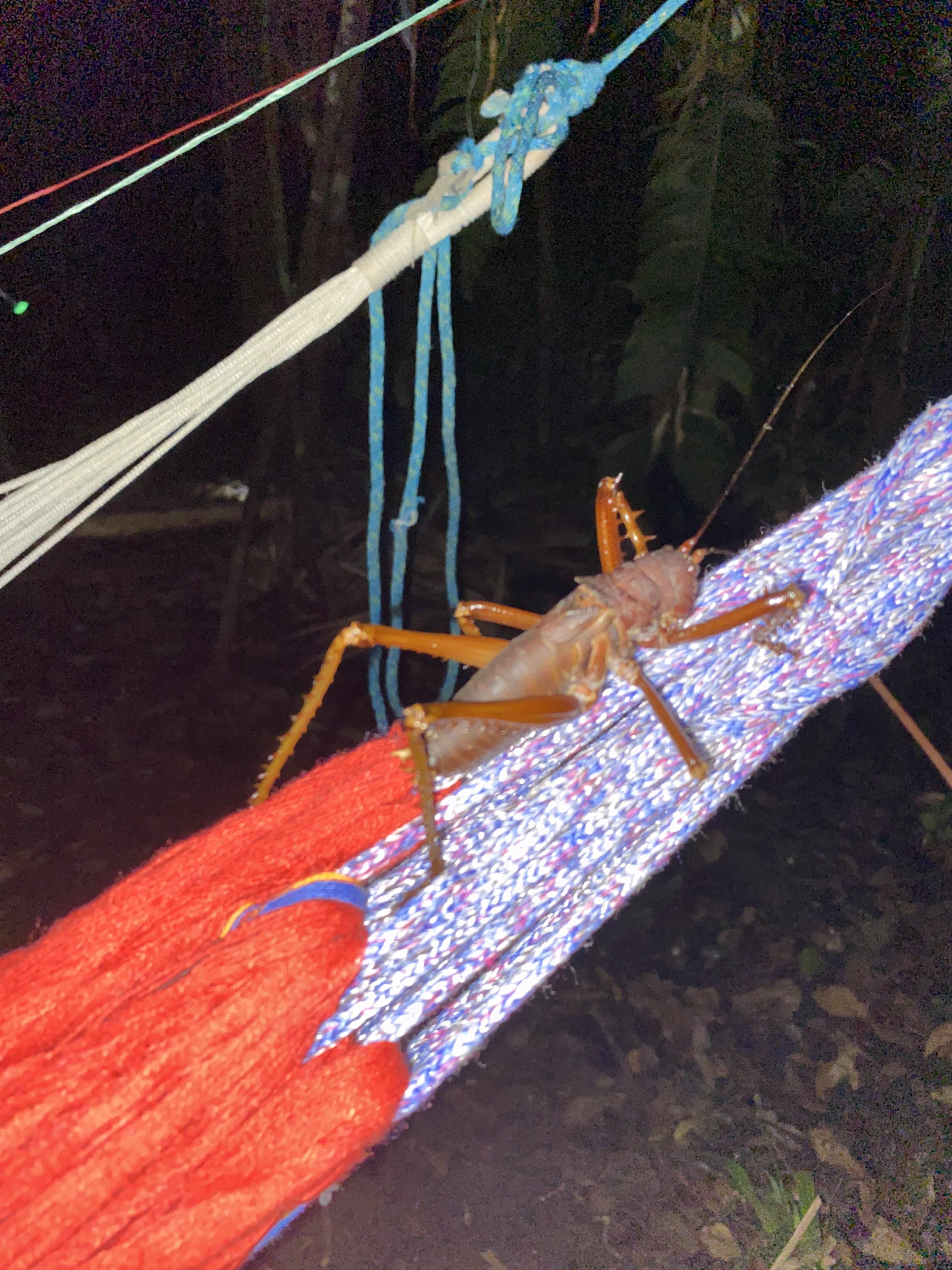 Giant grasshoppers quickly congregated on our mosquito nets.