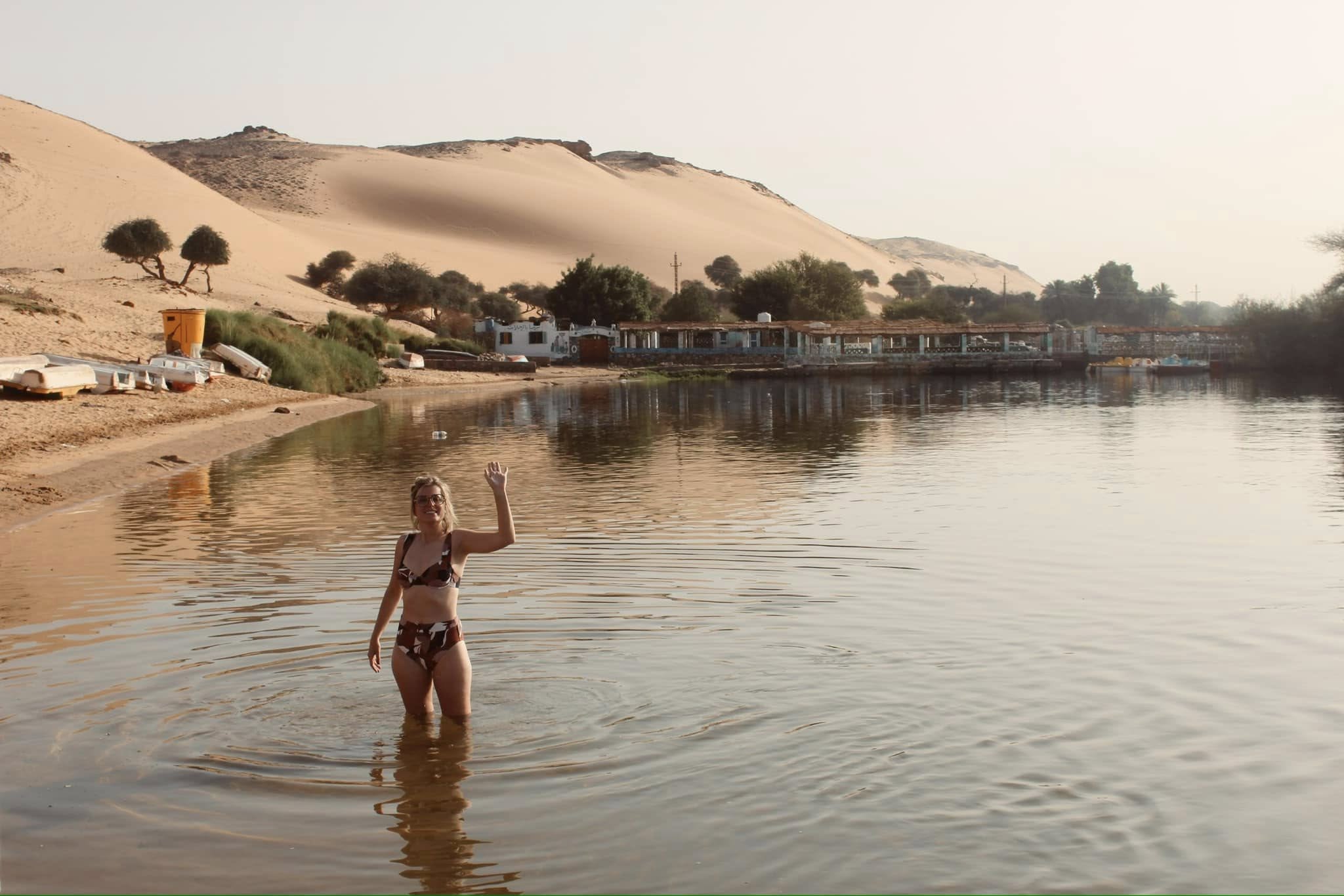 On our final day, Mohammed asked if we had an interest in booking an excursion before going to the Aswan airport for the chance to see a Nubian village where we could swim in the Nile. The village felt like a bit of a tourist grab but the prospect of SWIMMING IN THE NILE sold me. I have swam in some dark bodies of water: the piranha-filled waters of the Amazon River and a frigid polar plunge in Loch Ness. So sure, let’s tack on another crazy one!