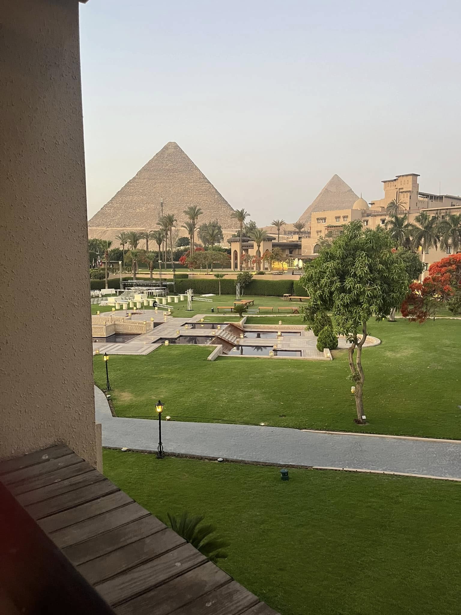 The two nights we were there, there were four enormous weddings on the property, each one hosting hundreds of guests. We ate dinner on the patio at a property restaurant, overlooking one of these weddings. For 2+ hours we sat there listening to the music and watching the beautiful outfits stroll around, all with a view of the Pyramid behind them. Our prior 5 days had been fun but stressful, so this was the most relaxing night we had had since Doha.