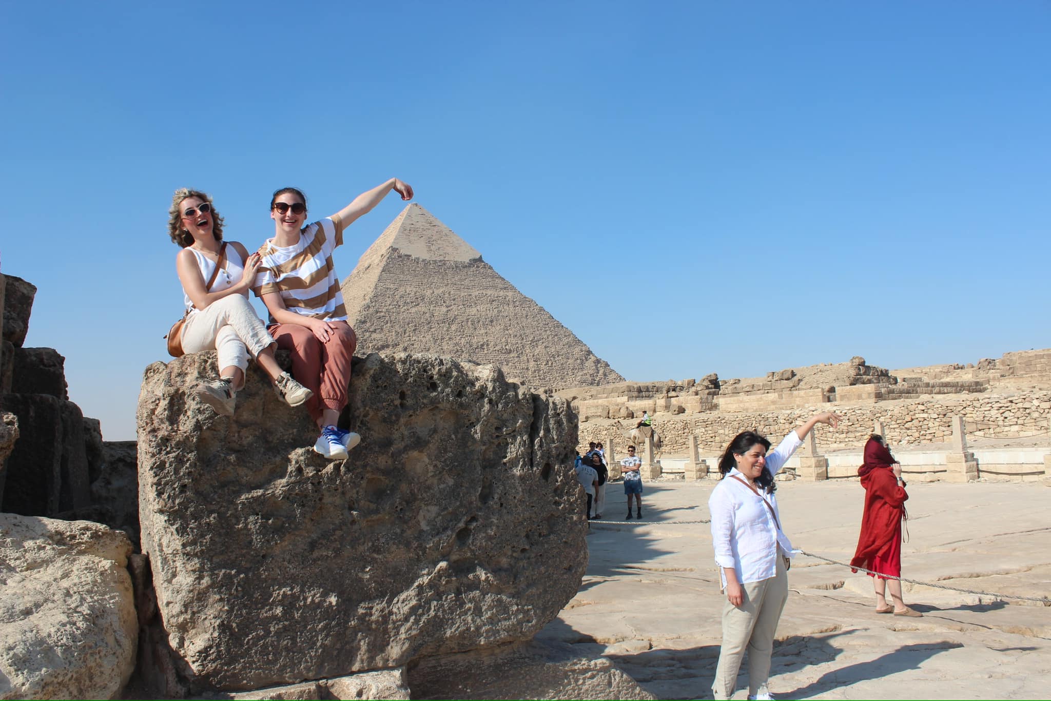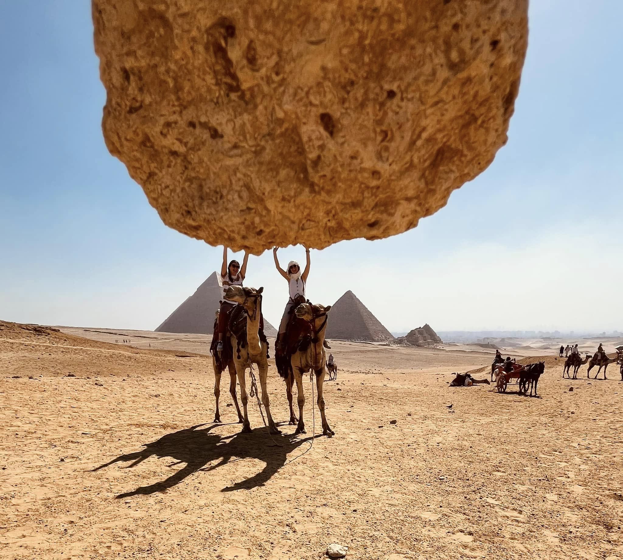 If you have any bit of claustrophobia, the Pyramid of Giza is actually hell on earth. You have to duck and climb a 26 degree angle to essentially see nothing, and then shimmy down the same shaft as people are continuing to come up. I was on the cusp of a full-blown panic attack. When we finally exited, I think Sam was concerned he had already lost one of his people before 9am. I was not looking well. Hannah summarized as :Hot, cramped, and I would never do it again”