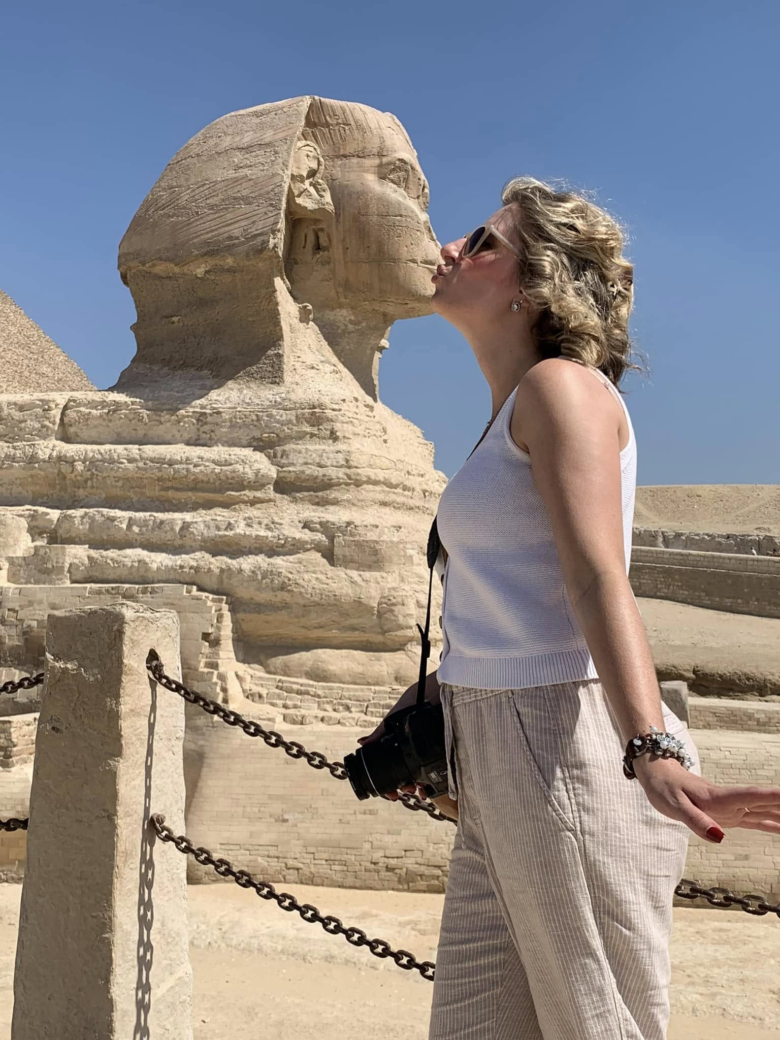 The next morning, our private guide picked us up for a full day tour of the Pyramids, Sakkara, Memphis, and a photo- opp ride on a camel. We found him through Viator at only $215 for the day. While we loved Mohammed and were sad to part ways with him, Sam drove a hard bargain for memorable guides! He is what the youth would compliment as an “Instagram boyfriend.” Not only did he get us into the pyramids before the crowd, but he took loads of pictures and videos of us all day. He was incredible. The pyramid climb was not.